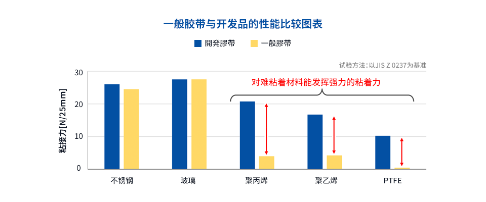 和目前的膠帶相比,此款開發(fā)膠帶不限于氟樹脂,對金屬、玻璃、PP等材料的粘接力也具有很大提升,對目前為止被普遍認為難以粘接的材料具有良好的粘接性能,具有劃時代意義。