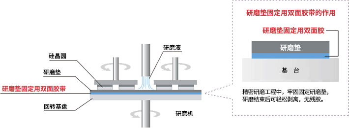 研磨布固定用雙面膠帶是以液晶玻璃基板制造工序?yàn)槭?,廣泛利用于電子材料制造工序的雙面膠帶