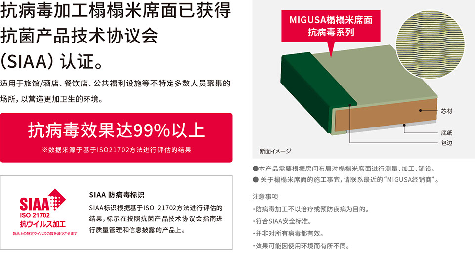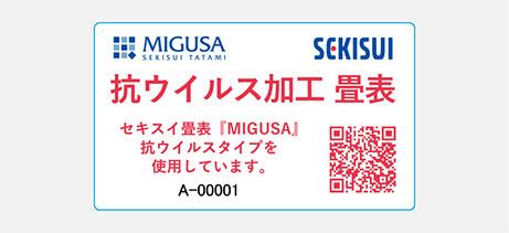 本標簽用于證明這是經(jīng)過防病毒加工的榻榻米。我們準備了這個標簽,是為了讓客人能夠更加安心地使用MIGUSA。