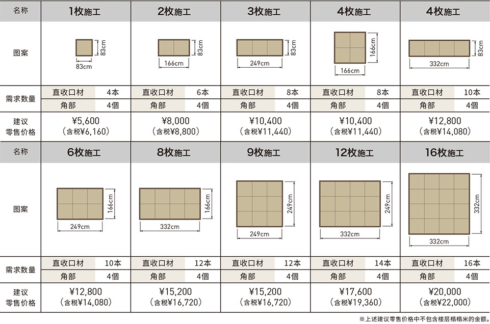 僅支持標準尺寸的榻榻米(83cm×83cm)