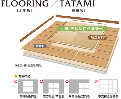 采用專(zhuān)為地暖用途加工過(guò)的榻榻米席面和專(zhuān)用芯材。